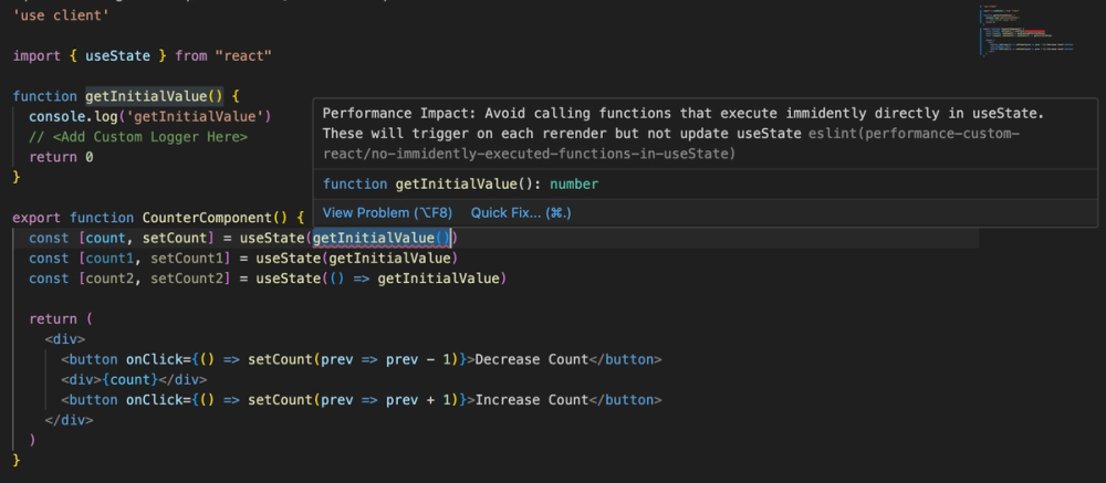 "performance-react/no-immidently-executed-functions-in-useState": "error"